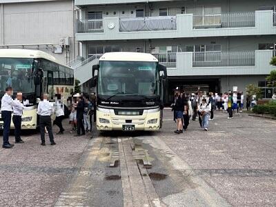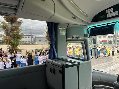 たくさんの在校生に見送りをうけて、みなさん予定通りバ