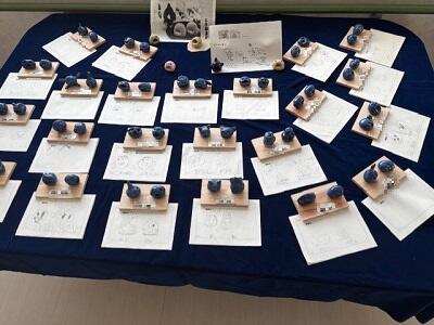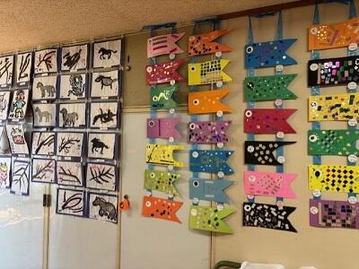 中学部は教室の周囲と作業実習室に作品を展示しています。