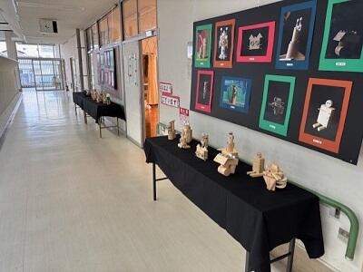高等部の作品は、高等部ホールと教室前に展示しています。