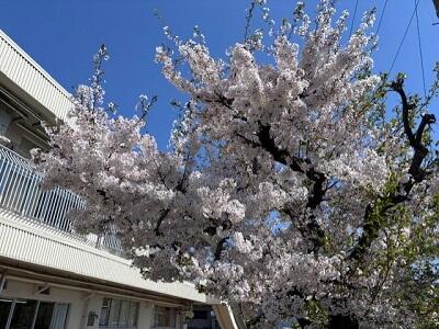 小学部棟にある桜は見ごろでした。あげはチョウをみつけた