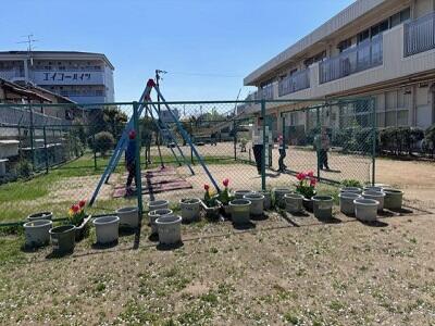 さっそく小学部のみなさんが、あたたかい校庭に出て、遊具