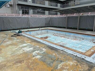 プール改修工事のようすです。9月26日(金)