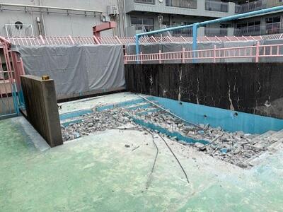 プールの底や壁のコンクリートを破断したり、プールサイド