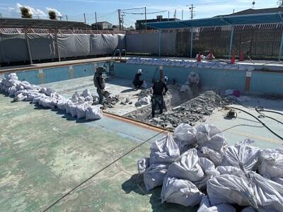 コンクリートがずいぶん深く、丈夫な鉄筋もたくさん見え