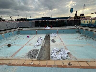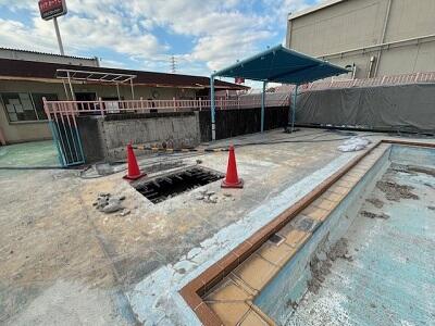 プール底や付帯物のコンクリートを撤去する工事が続いて