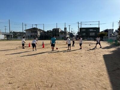 放課後、青空の広がるグラウンドで球技部のみなさんがサッ
