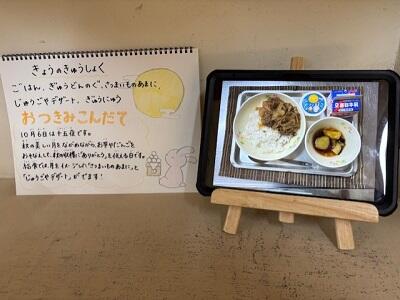 本日の給食は、十五夜にちなんで月をイメージしたサツマ