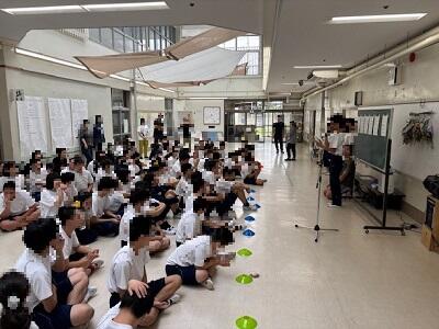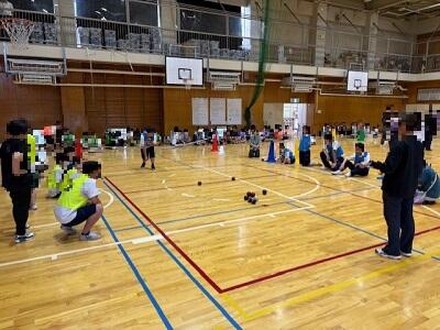 学年対抗でのボッチャ大会です。選手宣誓や司会を務める