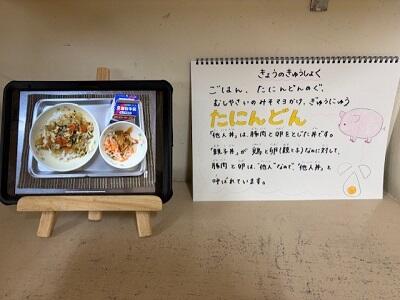 他人丼、蒸し野菜のみそマヨかけ、牛乳でした。