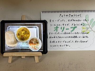 オリーブパン、かぼちゃのカレーシチュー、コールスロー