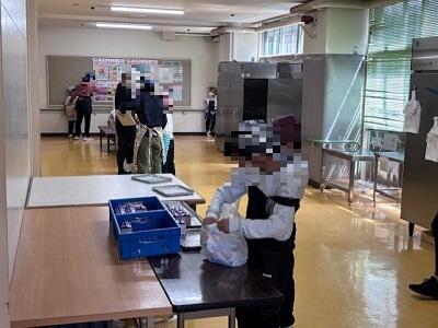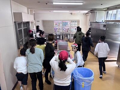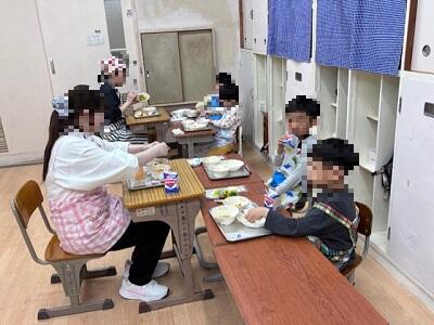 給食が始まり、各クラスでは何を運ぶかを決めています。