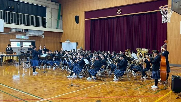 岸和田支援学校の小学部・中学部・高等部のみなさんに8曲40分のステージを聴いていただきました。私たちの演奏を楽しんでいる姿を見て、私たちもうれしく、楽しくなりました。