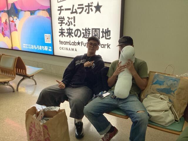 予定通りの行程で空港に到着しました。B班(1、2、5組)の飛行機は予定通り17:25出発ですが、A班(3,4、6組)は搭乗予定の飛行機がバードストライクがあったため,出発が遅れるとのことです。出発までの時間を皆さんは思い思いに過ごしています。