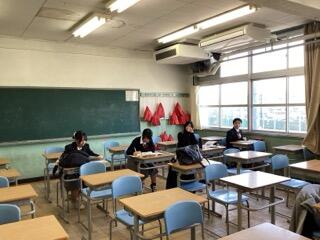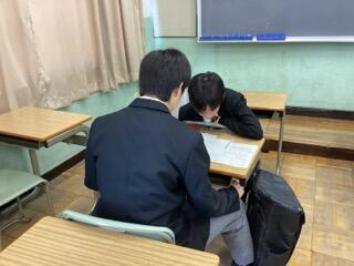 今日から期末考査です。朝、教室をのぞいてみると勉強している生徒の姿がありました。声をかけると、物理の勉強をしていた2年生は「たぶんいけるでしょう!」と力強い言葉で答えてくれました。また他のクラスでは「物理より英語の方が心配です。」という生徒やプリントで公式を一生懸命勉強している生徒もいました。1年生の方では「いつものことです。勉強はコツコツですね~」と余裕があるのか後悔しているのかわからないコメントもありました。同じ部活動のメンバーで勉強しているグループもあり、顧問の先生のご指導がうかがえました。努力の成果を発揮できるよう頑張ってくださいね!