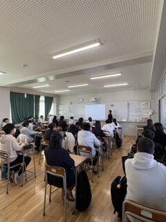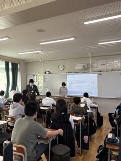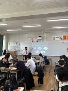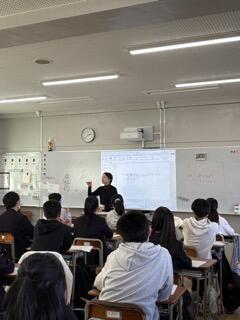 泉大津市内の中学校と本校を含めた近隣の高校との連携事業の1つです。泉大津市内には中学校が3つあり、各高校が3中学校を順に担当し、出前授業を行います。授業は中学2年生を対象としています。本校からは地歴公民(社会)、数学、英語、保健体育の先生に授業をしてもらいました。いつもと違う中学生対象の授業なので、教材を特別に準備して臨みました。どの授業も中学生たちは興味を示しながら真剣に授業を受けていたようです。授業したある先生は「緊張しましたが中学生たちが楽しそうに授業を受けてくれたのでホッとしました。」と感想を話してくれました。中学校含め地域との連携はこれからますます重要になってくると思います。小津中学校のみなさん、ありがとうございました。泉大津高校の4名の先生方、お疲れさまでした。