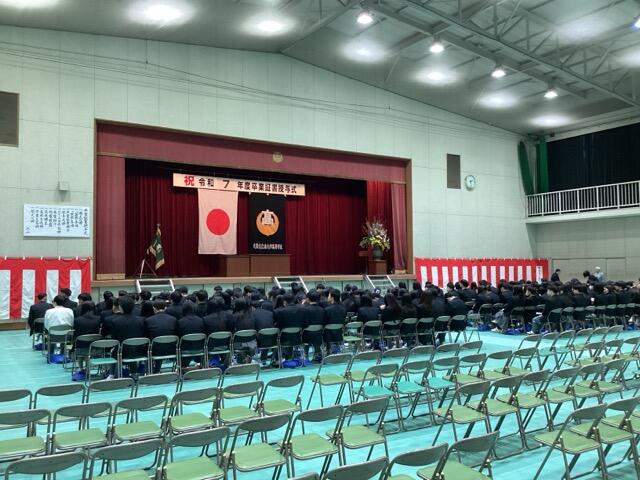 部活動をしている生徒の皆さんに協力していただき、式場を設営しました。そして午後から予行を実施しました。いよいよ明日、卒業です。