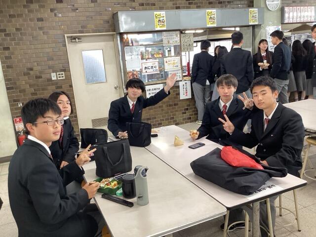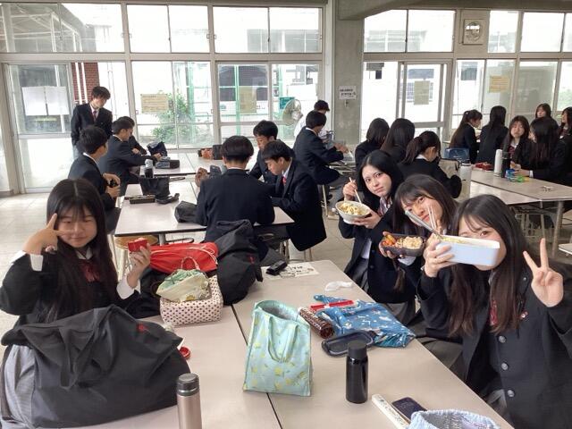 今日は食堂を利用しました。4限が終わり生徒たちが続々と集まってきました。あらかじめ予約をしておき、札を持って列に並んでいる生徒、メニューを見ながら何を食べようかと考えている生徒など、さまざまです。「何を食べたんですか?」、「何がおすすめですか?」と質問もされました。1年生の姿も見え、少しずつ学校に慣れてきている様子にホッとしました。お昼ごはんを食べて、今週ラストの授業に頑張りましょう!(ちなみに私は今日は家からおにぎりとおかずを少し持ってきていたので、食堂できつねうどんとともに食べました。またおすすめはと聞かれ「ミンチカツ丼」と答えました。)