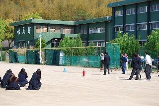 スムーズな避難でした、とお褒めの言葉をいただき、水消火による訓練を代表生徒が行いました。