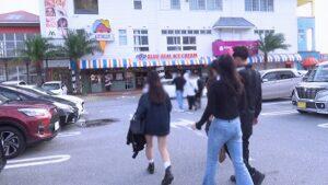 那覇空港に到着し、バスでアメリカンヴィレッジへ