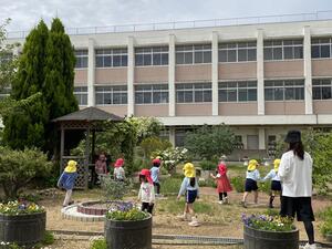 本校には農業科があるため、校内に畑や草花が常時栽培されています。農業を学ぶ生徒、教える先生だけではできないところを技師さんが丁寧に手入れをしてくださっています。今、たくさんの草花がいっぱい咲いていて、とてもきれいです。今日は、近くのカトリック幼稚園の園児さんがお散歩に来てくれました。少しの時間ですが、楽しくお花や虫さんたちと遊んでくれました。また来年も来てくださいね。