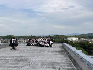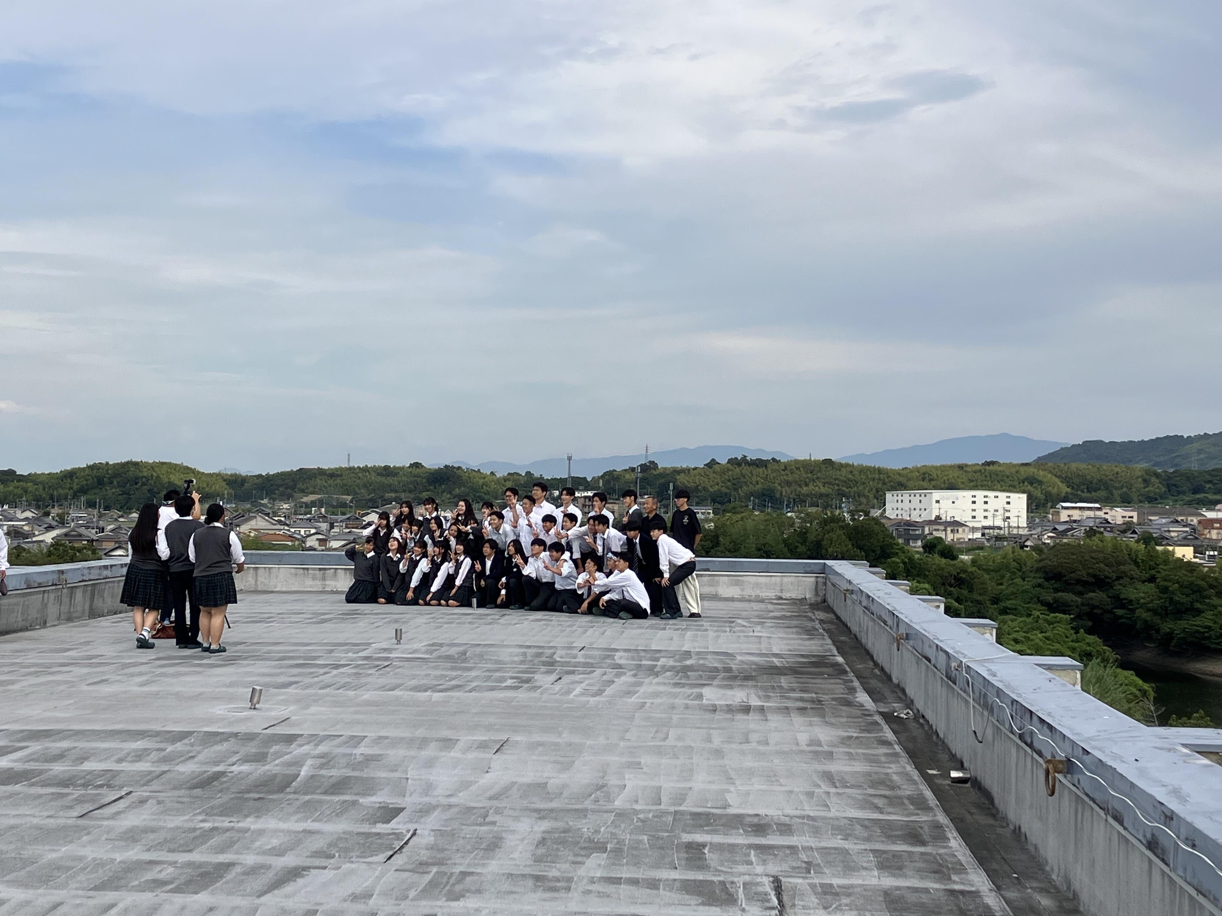 3年生が卒業アルバム用のクラス写真を屋上で撮影していました。