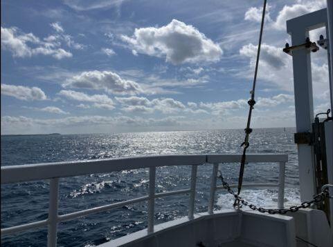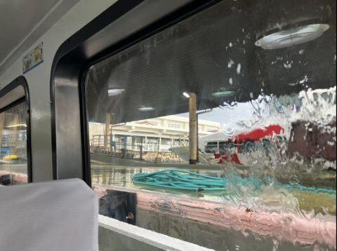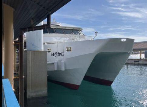 石垣島への帰りは、行きと比べて大きな船。途中で竹富島に寄りました。