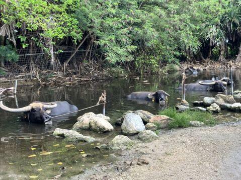 水牛は汗をかかず、鼻で熱を逃がすだけなので、こうやって体を冷やします。