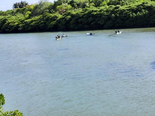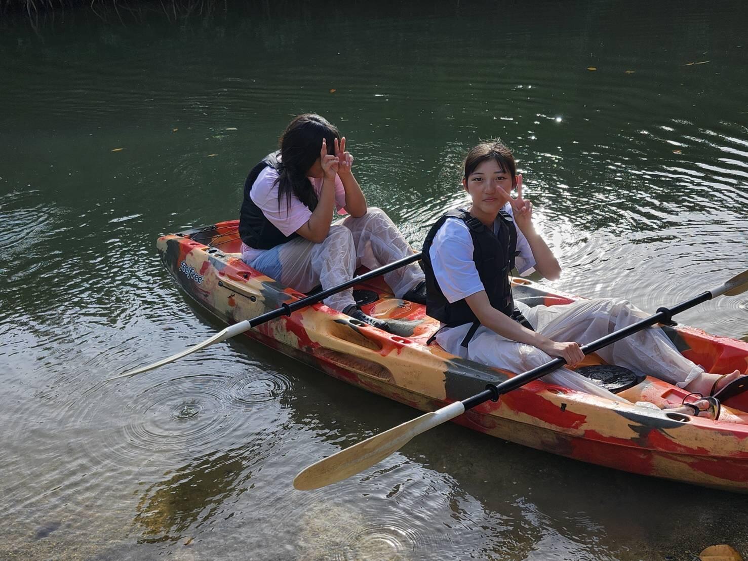 カヌー体験は午前~午後に行われました。午前は大雨が降っていたものの、午後にはそれまでの天候が嘘のように晴れてくれました。