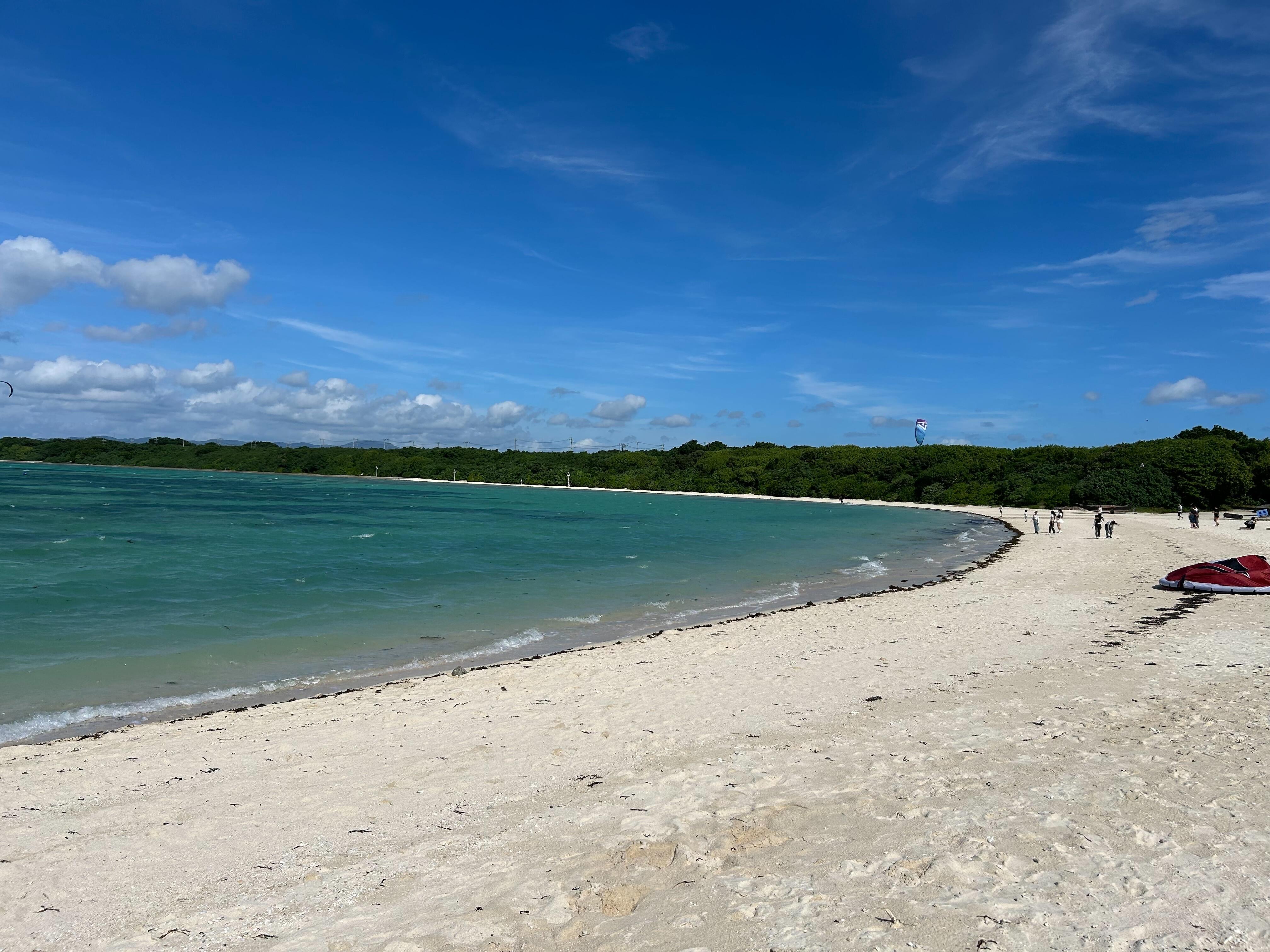 真っ白な砂浜、エメラルドグリーンに広がる遠浅の海。まるで絵はがきのようなこの海が竹富島自慢のコンドイ浜。 伝統的な赤瓦の家屋、屋根の上のシーサー、亜熱帯の花々が咲き、ゆったりとした時間が流れていました。