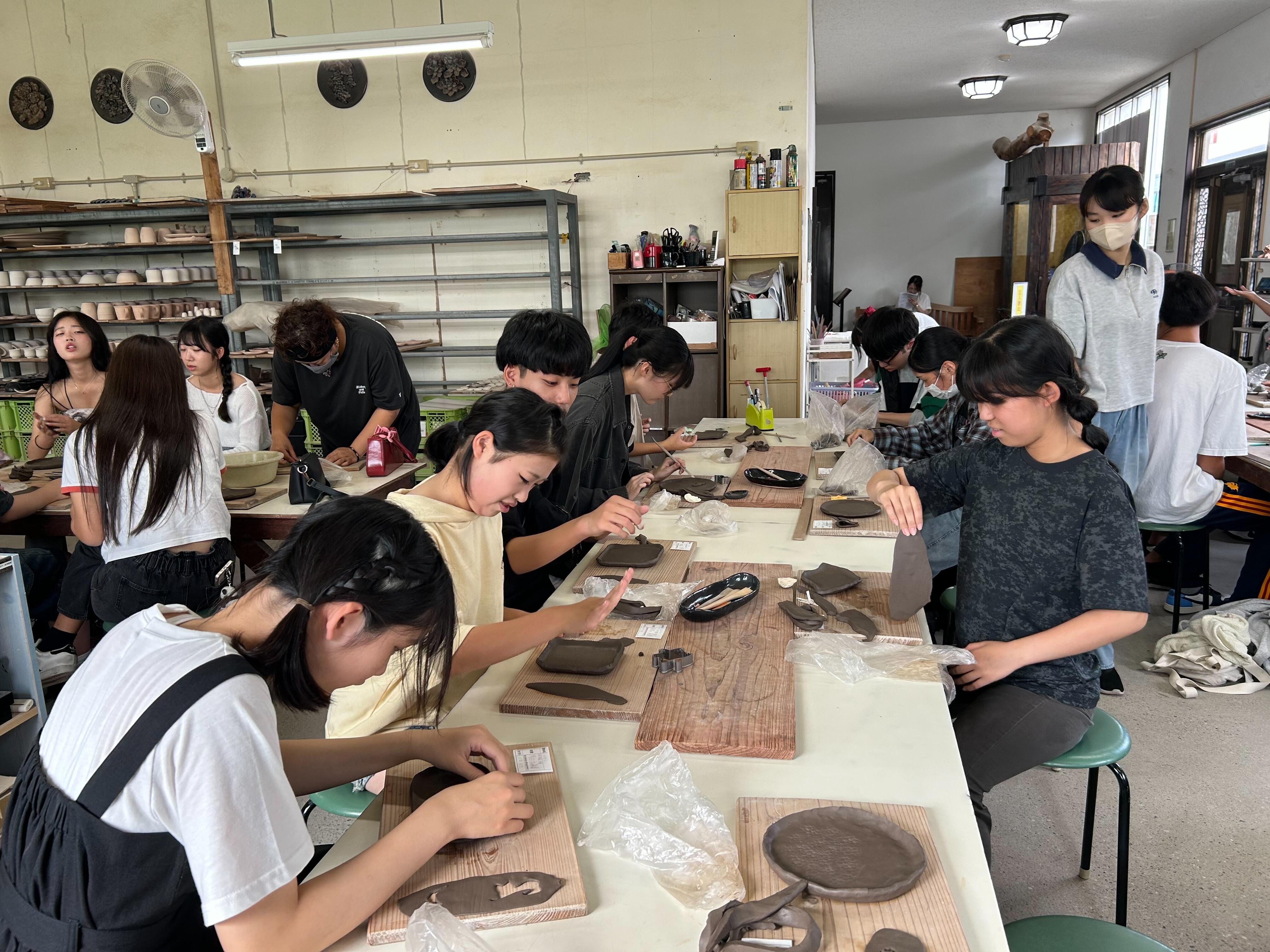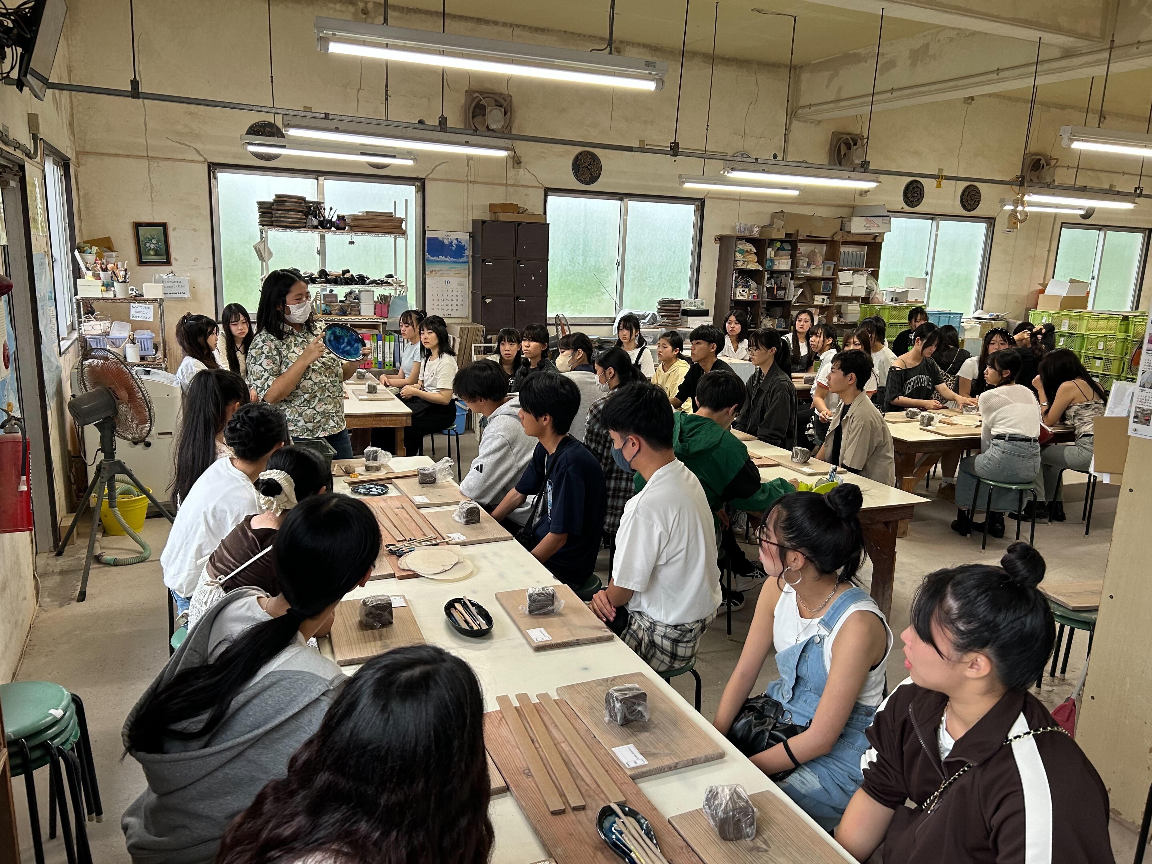 同じ形の作品を作っても出来上がった際の色のつき方は様々で、世界に1つだけの石垣焼です。 石垣焼は美しい油滴天目の器に、沖縄の海を表現した自然色のガラスを融合させた焼物です。「石垣ブルー」とも呼ばれる神秘的な青い色が特徴です。 今回作った作品は来年2月頃に届くそうです。そのときにはまた、楽しかった修学旅行を思い出すことでしょう。