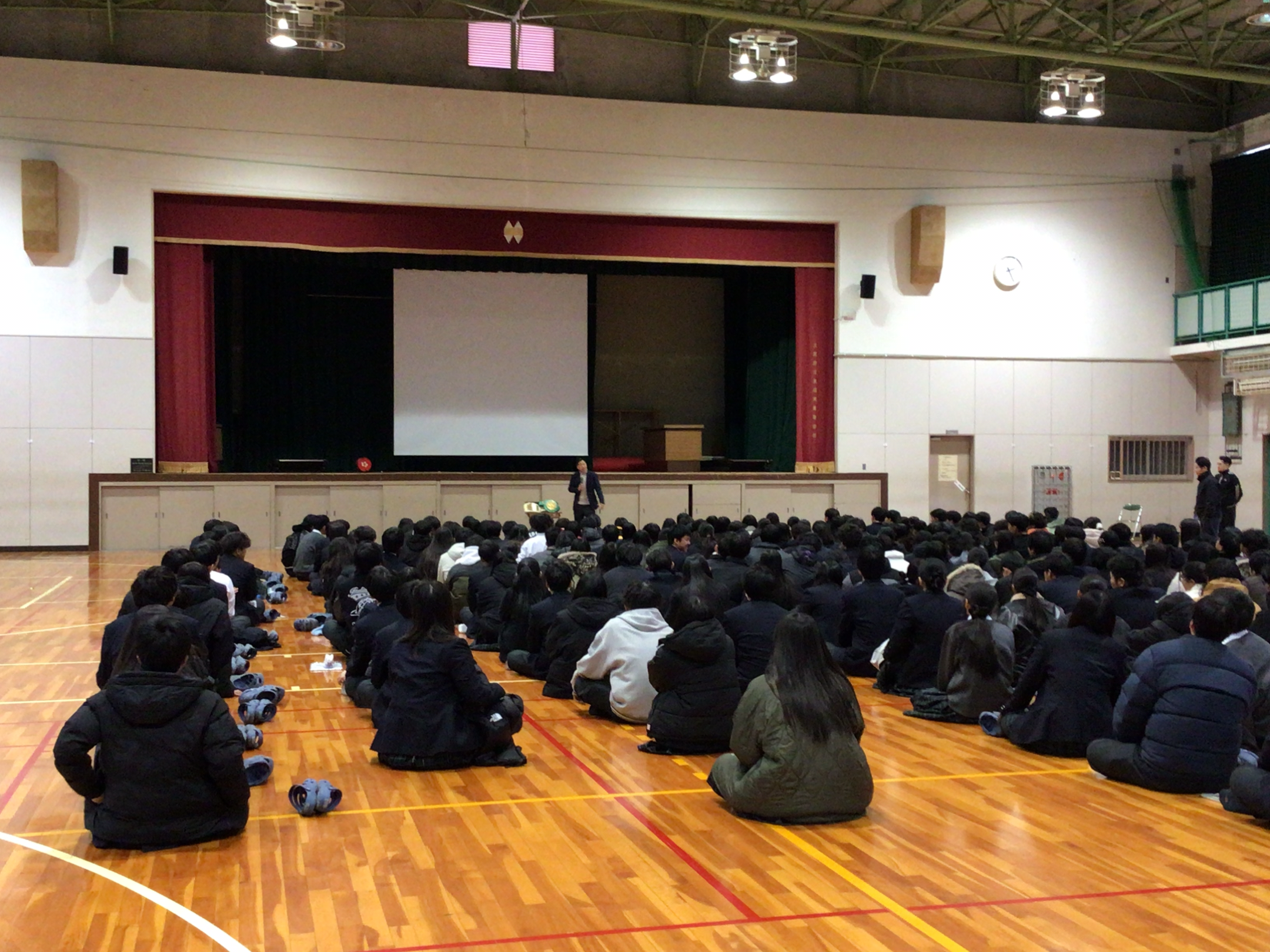 1月22日(木)6限目に、真道ゴーさんが1年生に向けて講話をしてくださいました。