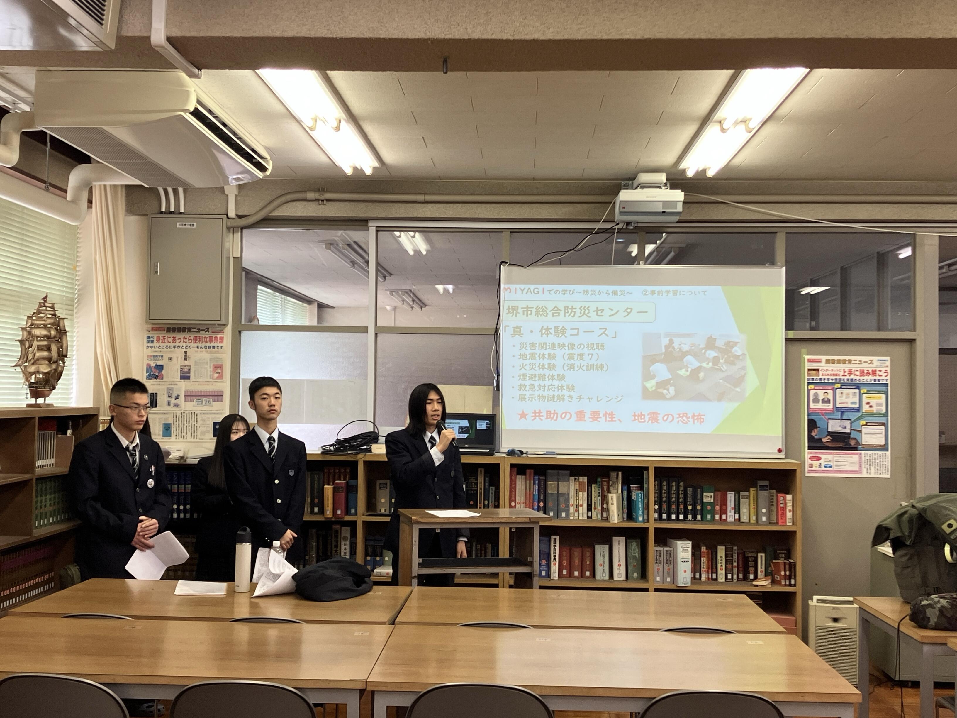災害に関する講演会も拝聴し、ついに本校の実践発表。