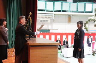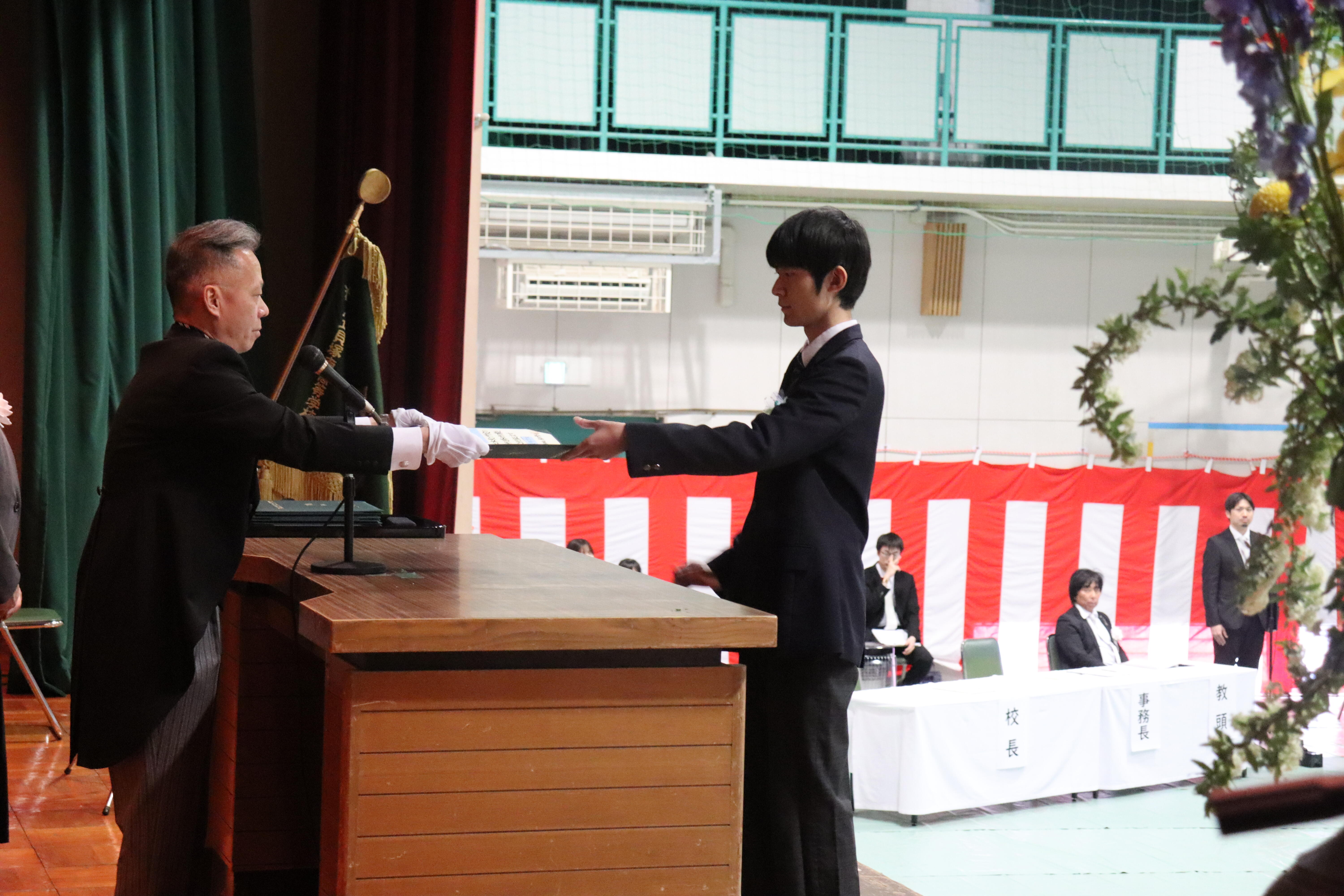 各クラス代表生徒への卒業証書授与。