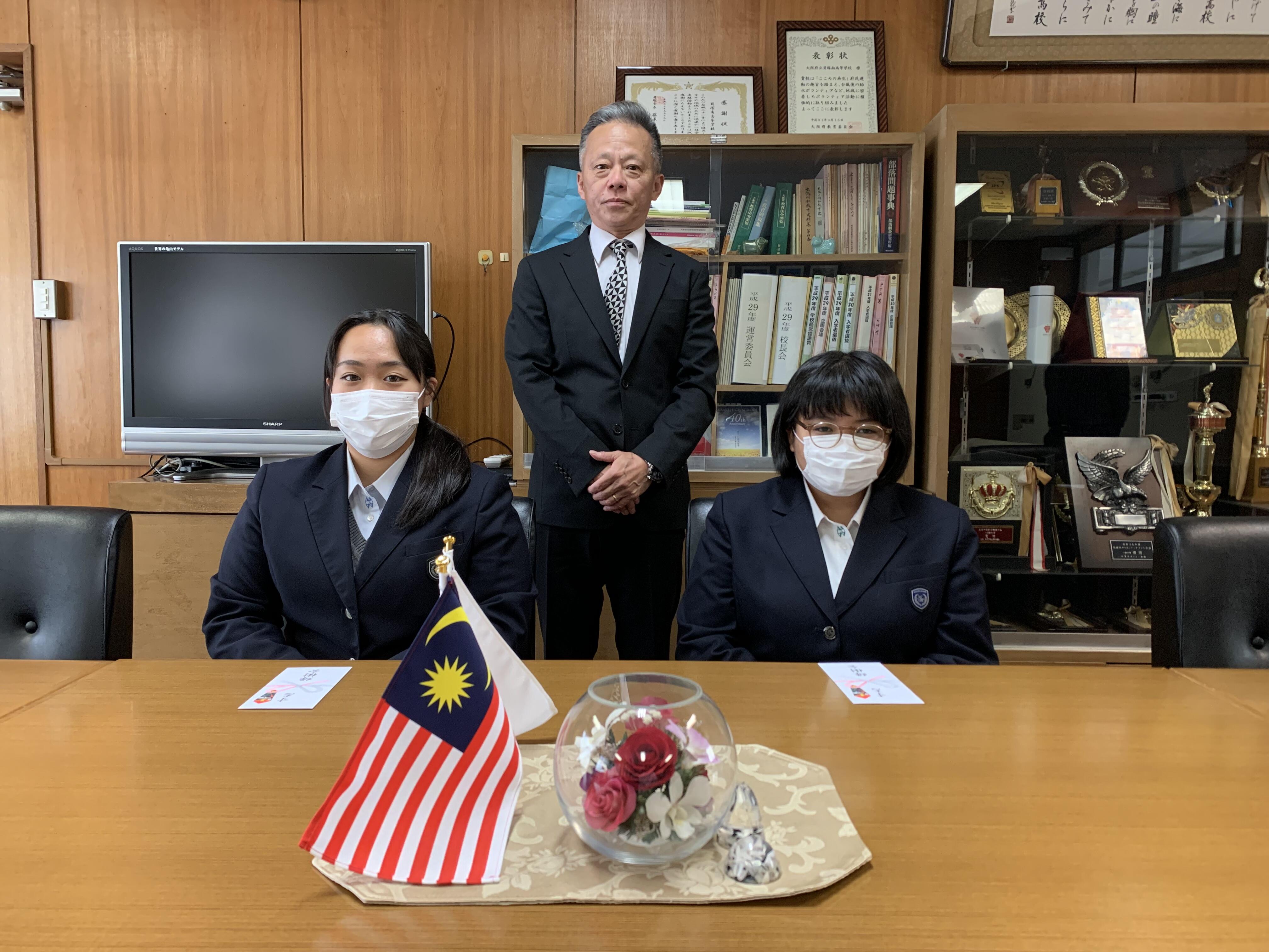 本校写真部、2名の生徒が体調不良の地元小学生を優しく適正に介助し、地域住民の方からお褒めの連絡をいただきました。本校生に他者の幸せを願える、思いやりの心情が育まれています。うれしい限りです。社会人としての模範であり、しなやかな感性と実行力に敬意を表したいと思います。本日校長室にて称賛の意を伝えました。又、同窓会から祈念品が贈呈されました。思いやりの心情がすべての生徒のみなさんはじめ本校関係者のみなさま方に育まれることを期待いたします。