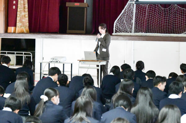 写真は11月27日の進路講演(ベネッセによるスタサポ結果)の様子です。