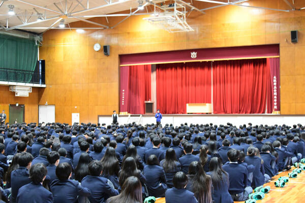 12月24日(水)に2学期の終業式がありました。1・2時間目の授業後、体育館で終業式があり、校長先生のお話や各分掌の先生方のお話をききました。また、2学期の表彰式もありました。終業式後は、大掃除で今年、利用した箇所をきれいにしました。HRでは、2学期の成績の配布がありました。