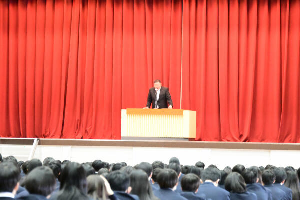 校長先生のお話から、各分掌の先生のお話がありました。生活指導の先生からは「4月から自転車の交通違反で青切符が切られること」など春休みの諸注意を伝えられました。また、表彰式では、1年生の生徒も表象されていました。終業式後は、教室でLHRと次年度の教科書と副読本を購入しました。LHRでは、この1年間の努力の結果(成績)が配布されました。