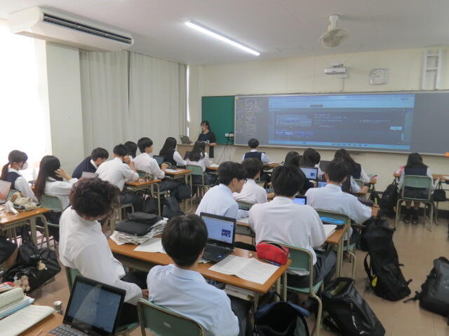 ようやく暑さも和らいできましたね。あっという間に中間考査一週間前となりました!日ごろの学習を振り返り、確実なものにしてくださいね!さて、金岡高校では毎年の2学期は授業見学を積極的に行っています。今回は、3年生の英文法演習を見学させていただきました!ウォーミングアップにゲーム感覚の早押しアプリを使ったり、ペアワークで楽しく盛り上がっていました。もちろん、単語や文法はしっかりと押さえていました!英語の楽しさが十分伝わる授業展開に生徒さんもエンジョイされていましたよ!見学させていただきありがとうございました。