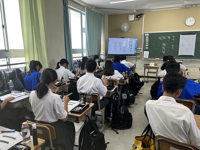 金岡高校の歴史上初の試みとして、近隣の金岡南中学校1年生8クラスの皆さんに「書写・書道」の出前授業を始めました!全3回の予定で、国語の授業を計24時間!!金岡高校の書道科教員がご指導させていただきます~♬中学校の先生もお手伝いいただき、1回目(4クラス)が無事に終わりました!次回は残りの4クラスを予定しています!筆の持ち方や姿勢など基本動作を学んでもらいました。とっても集中していたようですね。今後...