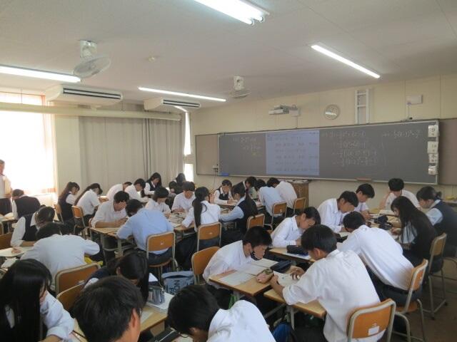 朝晩の気温がようやく下がり始めました。明日から来週14日(火)まで中間考査の期間になります。途中3連休を挟みますが、集中力を切らさないように学習に取り組んでください!教室も日中の気温上昇に伴い空調(エアコン)を稼働させる等の環境整備を行っています。生徒さん自身でも服装等で温度調整を心がけてくださいね。なお、考査中のブログはお休みいたします。*画像は1年生の数学Aの授業風景です。