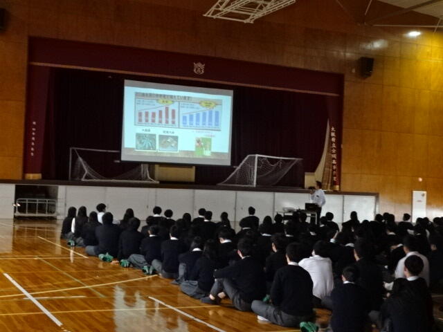 最近では、非常に問題となっている薬物乱用について、警察署の方から正しい知識を学ぶ機会を設けています。高校入学後の1年生には、様々な講義を受けてもらっていますが今回も大変重要なお話ですのでしっかりと聞いてもらいました。警察署の方からは、薬物そのもの・薬物を入手する際の危険性に渡り実際に起きた事件を交えながら講義していただきました。生徒の皆さんもとても真剣な眼差しで聞いていました。甘い言葉には、十分気を付けてください。そして、困ったことがあれば近くの大人に相談しましょう!