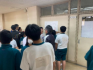 演説を終えた後は投票です。投票用紙の立候補者欄に〇を書いたり、各立候補者の投票箱に札を入れたりしながら厳正な投票を行いました。初めて参加する1年生も、どの先輩に入れようか迷いながら、しっかりと選んで投票することができました。
