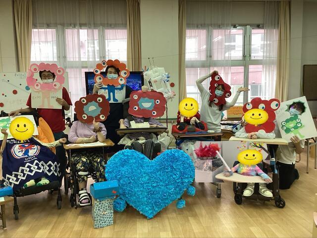こちらは7月に開催したお楽しみ会の様子です。現在は、今月末に実施予定の大うんどう会に向けて一生懸命練習に励んでいます。また本校や療育園にお越しいただいた際には、療育園の掲示板に授業で制作した作品を飾っていますので、是非ご覧ください。