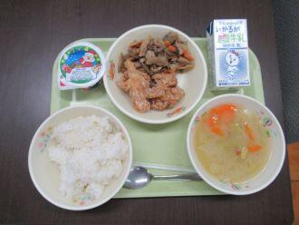 今日の給食はお楽しみ献立でした。鶏の唐揚げはみんな大好き!カラッと揚がっていてとっても美味しかったですね。お楽しみということでデザートにはチョコムースも付きみんな嬉しそうに食べていました。