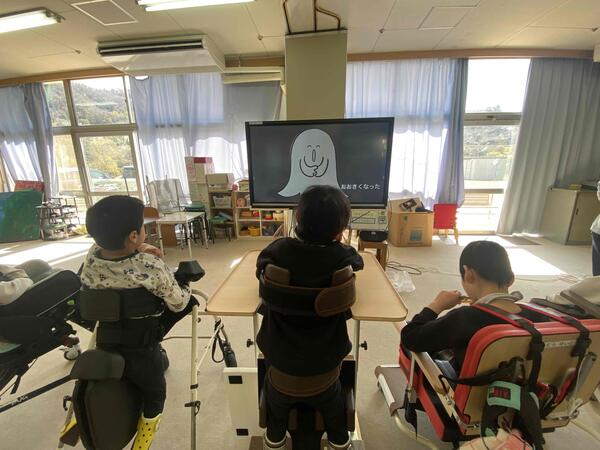 「ちいさい〇〇が~おおきくなった!」という繰り返しのあるお話です。大きくなっていく様子を見て喜んでいる子、大きいマスクと小さいマスクを見比べて、対応させて貼ることができるようになった子など繰り返し取り組むことでそれぞれ理解が深まってきています。