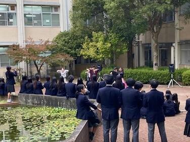 昼休みの中庭は一気にハロウィンムードに。