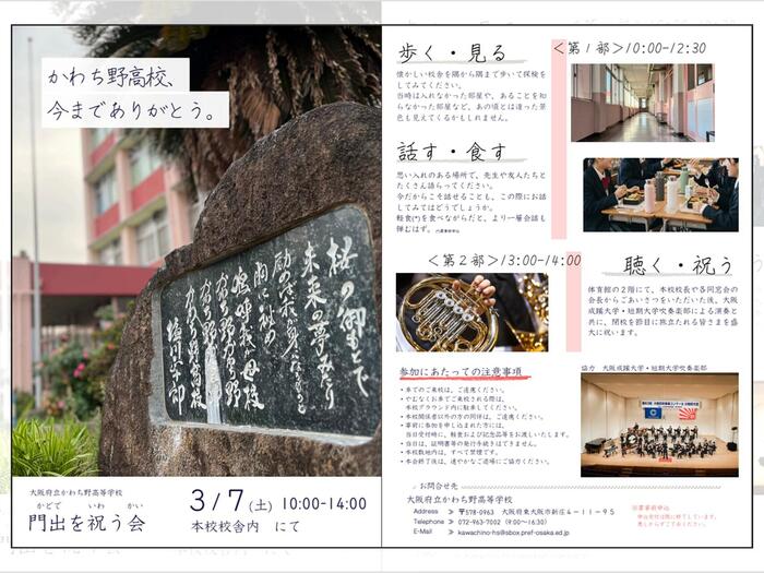 平素より本校の教育活動に、ご理解ご協力をいただき、誠にありがとうございます。 先般よりご案内をさせていただいた皆さまに、本会の詳細が決まりましたので、下記の通りご連絡させていただきます。 日時 3月7日(土)10:00~14:00(受付開始9:30より) 場所 本校体育館 会費 無料 詳細 10:00~12:30 第1部 校内を自由見学および軽食など 12:30~13:00 体育館へ移...