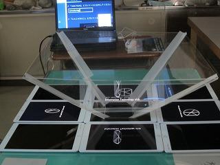 ICT同好会。ホログラムの実物と、その作り方を映像で。午後からは数学探求部の発表もあります。