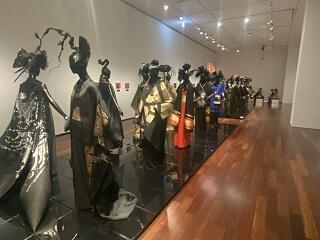 そのようなコシノジュンコさんがご活躍されてきた歴史が感じられる衣装やデザイン画、写真パネルなど約200点が展示されていました。どれも独創的で衝撃を受けるデザインに圧倒されました。能についても衣装が変わればこんなに印象が変わるのだと感じたところです。