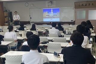 中間考査最終日の5月23日(木)13:00から会議室において、7月27日(土)から8月6日(火)までの11日間で実施する「イギリス研修」に参加する35名の生徒を対象とした「キックオフガイダンス」を開催しました。改めて研修の目的を共有し、帰国まで目的がぶれないように全員のベクトルを揃え、生徒各自の目標を定めるために行いました。